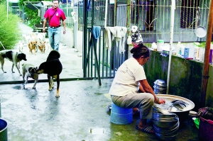 成都雙流縣彭鎮(zhèn)柑梓鄉(xiāng),遠遠的就能聽到從一處偏僻的農舍里傳出的犬吠聲。這里因為收養(yǎng)了一千多只因地震而傷殘、流浪的貓狗,成了“愛之家”小動物救助中心。