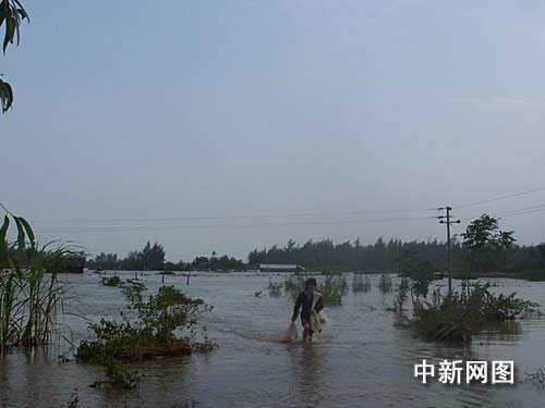 據(jù)徐聞縣前山鎮(zhèn)官員反映,由于連日大雨滂沱,降雨量達近400豪升,為當?shù)厥暌挥觯?zhèn)16000多畝水田受浸,導致正待收獲的九成以上水稻失收,同時,大量魚塘被水淹沒,全鎮(zhèn)經濟損失近7000萬元。
