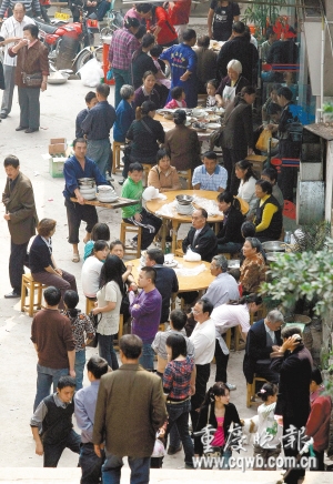 昨上午,記者驅車趕往珍溪鎮,在黃旗附近因修路堵車,從采訪車前后的轎車上,分別下來七八位乘客,他們彼此熟悉,其中有官員有商人,都是從新妙和涪陵城區趕往珍溪為秦鎮長的父親祝壽的。