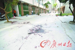 案發現場仍留有一攤血跡。