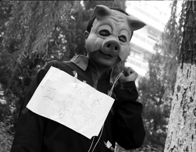 小劉說,他也是艱難考慮了一年才作出這個決定的。他說,戴面具不是因為怕羞,而是怕給家人帶來影響。至于專門挑選的豬頭造型的面具,則是“因為我也知道自己的行為很傻”。小劉的行為引來了路人的關注和質疑。“男兒膝下有黃金,你這么做都對不起父母,給我起來!”一位老人嚴厲地說。面對質疑,小劉一再表示,要跪到堅持不住的時候再走,“我這一輩子只做這一次”。直至下午1點,小劉最終放棄了跪求,休息過后自行離開。
