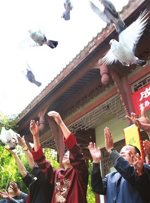 峨眉僧門掌門人昨日放飛120只信鴿,邀請天下武林高手參加11月1日在成都舉行的達摩盛會