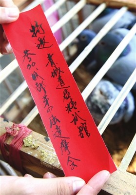 原本發一條短信或是打一個電話,一分鐘就能搞定的事情。為何這么大費周章,要用飛鴿傳書的形式呢?何偉琪介紹,古人就是利用烽火狼煙、繩結、信鴿等方式來遞信息的,而飛鴿傳書更是古代武林界重要的傳統儀式。在通信日益發達的今天,飛鴿傳書也只是對“傳統”的演繹。何偉琪說:“如果效果不錯,四川武林界將把這種傳統通信方式繼續沿用下去。”