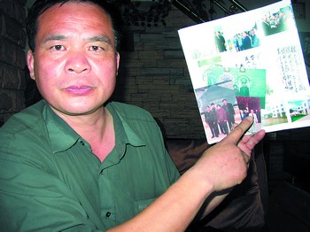 山東農民李漢君向記者展示他收藏的彭德懷元帥書籍的目錄和照片。劉炬 攝