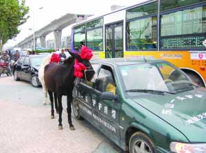 驢肉店生意不好出怪招 轎車牽驢在馬路巡游(圖)