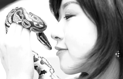 “呀!那個女娃兒和一條花蛇親嘴!”昨日下午,一名年輕女子手持一條金、黑相間,一米余長的蛇出現在南坪福利社附近,引起市民圍觀。這時,女子當眾與愛蛇接吻,驚嚇住在場群眾!