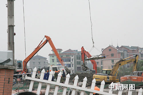 中新網杭州11月17日電(記者 柴燕菲 江耘)今天,記者在施救現場看到,施救人員在地鐵坍塌現場將第五具遇難者尸體打撈上來。