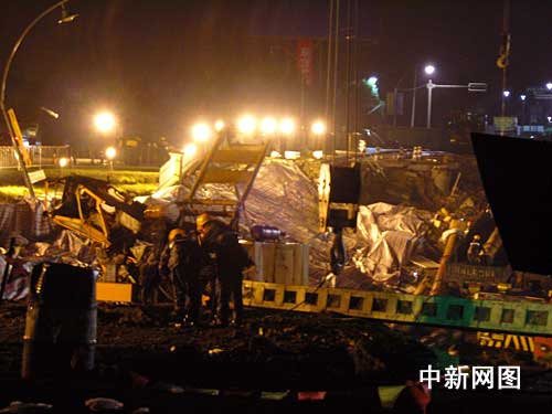 中新網杭州11月17日電(記者 龔讀法 實習生 王磊 姜越潮)11月17日晚,浙江省杭州市地鐵施工塌陷事故現場,下起了小雨,工作人員立即組織搶鋪帆布,避免因雨水浸泡導致出現新的坍塌現象,阻礙救援工作。