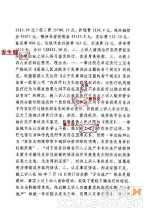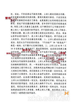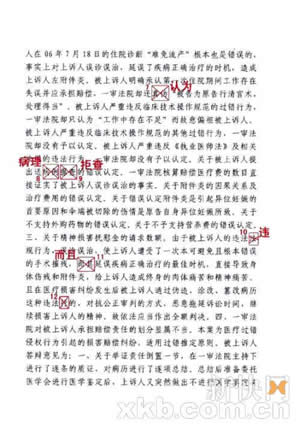記者在判決書掃描件中的確發現不少筆誤,比如把“導致”寫成“導治”、“人工流產”寫成“工人流產”、“附件炎”寫成“附件驗”和“附件鑒”、“被上訴人”寫成“被上訴們”、“認為”寫成“真偽”,“拒查”寫成“據查”、“整理”寫成“整體”、“人流史”寫成“人流使”等。