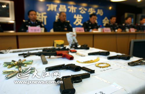 11月17日,南昌市公安局舉行新聞發布會,通報破獲的販賣毒品、槍支案