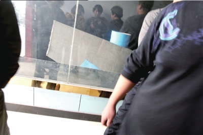 兩名攝影記者被緊緊包圍著。僵持中,六七名便衣男子突然向夏永沖來。“走!”兩名男子架起夏永往旁邊燈具城拖,還有幾人在他背后用力推。孫純霞尖叫,并迅速地按了快門,拍下夏永遭圍攻的一幕。旁邊的群眾開始喊:“打記者了!打記者了!”