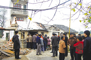 因?yàn)槠较锎宕迕褚呀?jīng)搬遷離村,聚集在老徐家門(mén)口的都是10米開(kāi)外的大巷村村民。一位村民告訴記者:“拆遷搞建設(shè),我們可以理解,可是,前提是要保護(hù)好拆遷戶的合法利益,有人出此毒招試圖將人趕走,真是無(wú)法無(wú)天。”