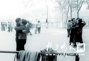 很巧的是,南京大學(xué)教攝影的謝白老師寄給本報(bào)的老照片里,也有一組關(guān)于“交際舞”的。那是在80年代后期90年代初,彼時(shí)“交際舞”早已不是青年男女用來交友、展示青春釋放活力的時(shí)髦玩意,越來越多的中老年人開始喜歡上了這種能夠舒緩身心愉悅性情的活動,于是“交際舞”開始演變成一種全民健身式的運(yùn)動項(xiàng)目。在此背景下,上個(gè)世紀(jì)80年代末的幾個(gè)清晨,謝老師在南京的和平廣場、南大操場等地,留下了許多中老年男女“聞雞起舞”的愜意身影。(張磊)