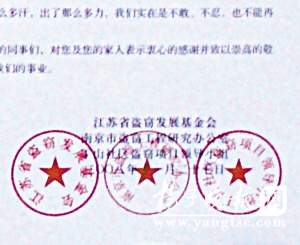 昨天中午,家住察哈爾路104號2單元的居民方先生給本報打來電話說,早晨居民發現單元門的玻璃上被人貼了一封感謝信,字句是打印的,最雷人的是,這份感謝信落款分別是江蘇省盜竊發展基金會、南京盜竊領導小組和丁山社區盜竊領導小組,所蓋的印章不像是電腦制作的,而是印泥蓋上去的,他還拍了照片。為此,記者前往該小區,得知那封感謝信已經被人揭下。通過方先生拍的照片,記者閱讀了那封感謝信。