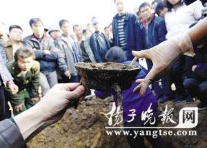墓地里挖出一個(gè)青銅器,專家稱是1500年前的。