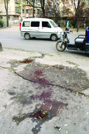 12月4日下午3點(diǎn),山大路與解放路交會(huì)口向南,路西一家飯館門前,人行道上的地面雖已被人用水沖洗,但一大攤鮮紅的血跡依舊扎眼。
