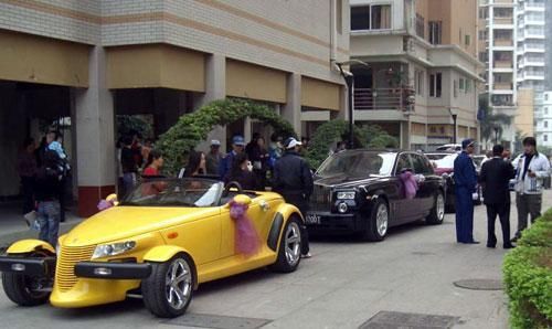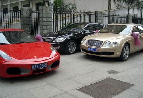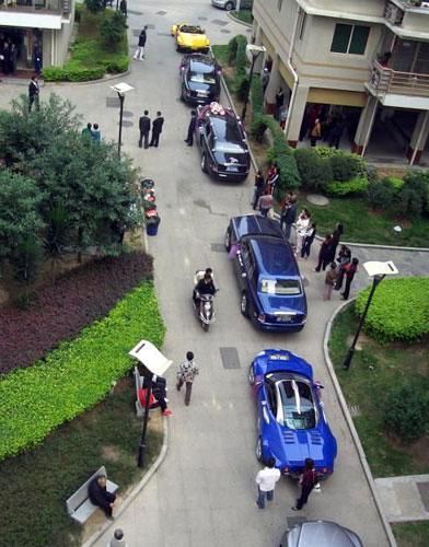 貌似并不高檔的小區內,卻出現了超豪華的強悍車隊:“獵獸”開頭,后面跟著三輛“幻影”,以及“賓利”“世爵”等車(如圖)。昨日,一則《福州某集團老總嫁女,豪車云集》的帖子在某網站論壇走紅,該帖描述在福州的碧水芳洲小區,某集團老總嫁女,眾多豪車云集,場面壯觀。眾多網友稱,已被這些豪車震得說不出話來了。(成都晚報)