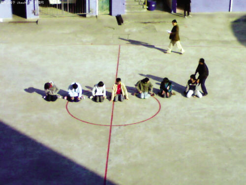 學生:幾個同學“跪”在操場