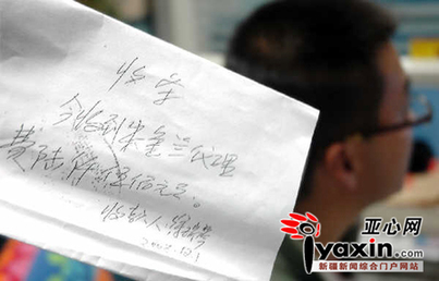 記者看到了這張收條,是在一張出租車發票背面寫的。
