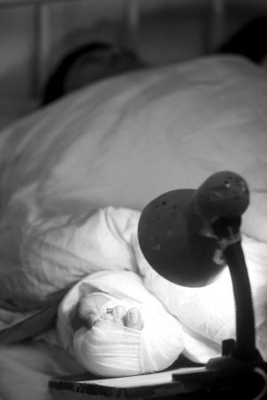 昨日,記者在醫院見到劉成剛,他躺在病床上,右手小指已經接上,醫護人員表示,現在還需要經過幾日觀察期,才能確定手指是否成功接上。