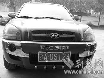 警方稱,13日下午 5時 50分,聶某駕駛一輛鄂A0S124黑色現(xiàn)代車(如圖),經(jīng)過漢江大橋收費處2號通道時,聲稱該車是省公安廳警用車輛,拒不繳費,還對收費站工作人員稱:“如不放行,后果自負(fù)!”