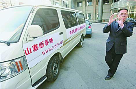“向央視春晚叫板,給全國人民拜年”,并標了山寨春晚網址。11月28日,北京一小區的樓下,一輛寫有挑釁口號的面包車非常惹眼。這輛“牛車”車主四川小伙老孟說,要自辦一場草根參加的山寨版春晚,時間與央視春晚同步,通過網絡直播,目的就是向央視春晚叫板。