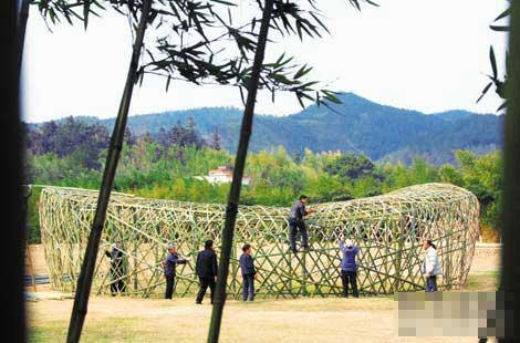 杭州雙溪景區的村民仿照奧運鳥巢的造型,用了800根竹子,10多個人經過15天的手工編制,以20比1的比例制作出“竹鳥巢”,并將它作為當地鄉村運動會的會場,開展沙灘排球、弓箭狩獵、滾鐵圈等項目。(7月29日《天府早報》)