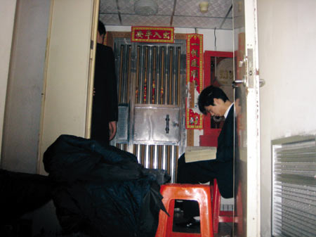 記者敲門想采訪,應聲開門的中年男子一聽是記者,隨即關門。記者想再敲,站在角落里的該負責人則稱,“別敲了,敲也不會再開,現在除了他老婆、孩子來了,誰也進不去”。