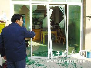 附近民居的玻璃門被震得一片狼藉。曉羊 陳詠 攝