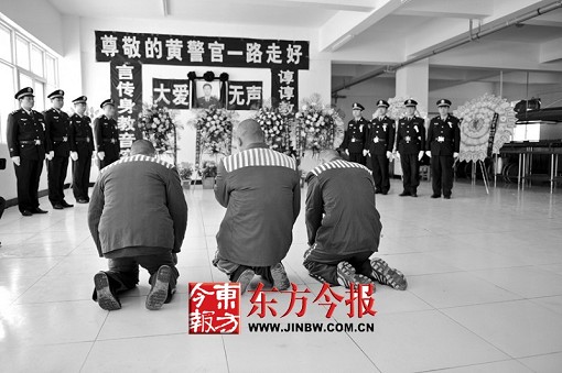 12月17日上午,(河南)省平原監(jiān)獄食堂破例召開了追悼會(huì)。在監(jiān)獄召開追悼會(huì),這在全國(guó)監(jiān)獄系統(tǒng)還是頭一次。而這個(gè)追悼會(huì),是應(yīng)141名服刑人員強(qiáng)烈要求召開的。12月12日,曾管教他們的51歲獄警黃中文倒在了工作崗位上,他們自愿出錢,請(qǐng)人買了花圈,要求送一送這名好獄警。