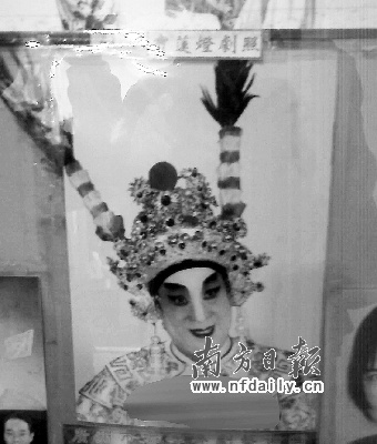 位于龍津東路708號—712號的榮華樓,是廣州現(xiàn)存少數(shù)的百歲老茶樓之一。昨日下午,榮華樓的樓梯口處貼著云峰粵劇團(tuán)演員的劇照,團(tuán)長白×峰武生打扮的劇照頗為搶眼,徒弟何×瑩則是一張素裝照。茶樓服務(wù)員介紹,云峰粵劇團(tuán)在此駐唱兩年多,“峰哥”是團(tuán)長,擅長武術(shù),尤其是螳螂拳,云峰劇團(tuán)每天最少上一場折子戲,吸引不少廣州老戲迷來捧場。