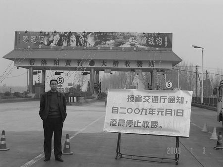 在網(wǎng)友提供的圖片上,記者可以看到,洛陽黃河大橋收費站前,赫然立著一個大牌子,上面寫著:四類危橋,嚴禁總重55噸以上車輛通行。洛陽市公路路政管理支隊。