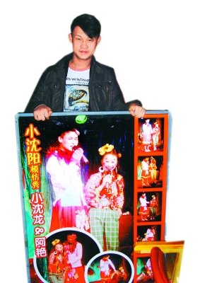 每天晚上8時(shí)11分,小沈龍都會(huì)和同伴們?cè)诮鹌计级宿D(zhuǎn)劇場(chǎng)開演。這幾天因?yàn)檫^年的緣故,小沈龍他們通常會(huì)表演到晚上11時(shí)。因?yàn)樾∩蜿?yáng)火爆的緣故,在金萍萍二人轉(zhuǎn)劇場(chǎng)買票的時(shí)候,工作人員都會(huì)提醒:“我們這里有一個(gè)小沈龍,和小沈陽(yáng)一樣一樣的。”在一張海報(bào)上則印著“小沈陽(yáng)模仿秀——小沈龍”。