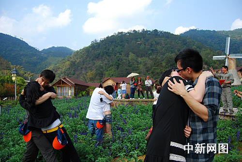 其時,數十對年輕戀人在紫色薰衣草“海洋”中以最深情最特別的花式親吻“大曬幸!,從“蜻蜓點水”到“居高臨下”、從“天旋地轉”一直到“深情熱吻”,各有捧場客,頓時贏得了現場游人的陣陣掌聲和歡呼聲。