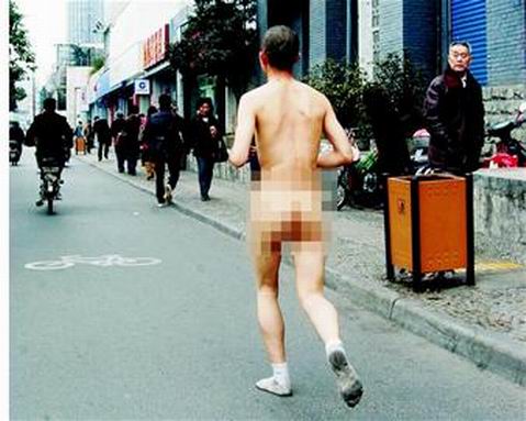 昨(17)日上午10時許,一名20歲的小伙子一絲不掛,腳穿白色襪子,手提一雙大紅女高跟鞋從一號橋沿著非機動車道一路狂奔,令行人驚詫不已。市民報警后,110巡警將男子帶到派出所接受調查。據了解,該男子高考失利后,不堪家庭、感情的壓力,有些神志不清。