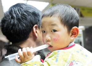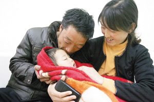 李貴樹是河北張家口蔚縣草溝堡鄉高莊子村村民,今年37歲。大兒子今年過完年去保定一家餅干廠打工。小李瑞幾天前剛過完兩周歲生日,與母親相比,小家伙更喜歡與父親在一起玩兒。平時李樹貴只要一出門,小李瑞便大聲喊“爸爸,回來”。正是這份親情,看上去比實際年紀大不少的李貴樹特別喜歡這個小兒子,抱著時總親個不停。