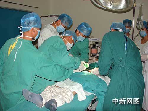 在醫(yī)生的監(jiān)護下,消防官兵根據(jù)以往救援經(jīng)驗,小心翼翼地將一塊鐵片置于鋼圈與生殖器之間,以防誤切。兩名消防兵利用鐵鉗將鋼圈固定住,然后用電砂輪將鋼圈慢慢切開兩道對稱的口子,再將鋼圈切成兩個半圓取出。其間,一名醫(yī)生負(fù)責(zé)在鋼圈切割部位澆淋消毒水。