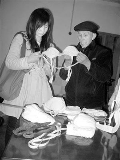 傍晚,大爺在桌子上堆起一大摞成品胸罩,都是樣品。大爺說:“從4寸到8寸的都有,你看這做工!”“我只懂A杯、B杯啊!”說完這話的劉梅,看到大爺一臉茫然。傳統的尺寸和現代的“杯標準”成為老少兩代人的第一道難題。“就是從最小到最大嘛,簡單,下來慢慢換算。”3人和冉大爺的幺兒媳周大姐一起細化即將開始的工作。周大姐當“打工”,兩個同學負責把信息上傳貼吧并建起一個網店。“25-80元一個,純棉面料環保,手工制作個性,對于一大一小或單邊的客戶更是長項。”這是他們初步的網絡宣傳詞。