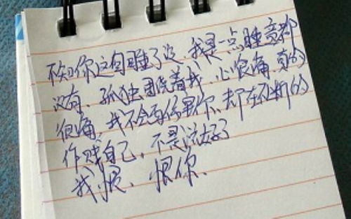 2009年3月5日上午,初春的蘭州空氣中凝結著一股冷氣,人們不時地打著寒顫。天很冷,但是一個住在小招待所里的女子的心似乎更冷,簡陋的房間映襯著她的孤獨,她似乎感覺不到這個世界上還有溫暖,她把自己手機上絕大部分電話號碼刪除了,用發(fā)抖的手在隨身攜帶的本子上寫下了55個字。她絕望了,她不再希望男友給他任何承諾,她最后寫道:“我恨,恨你。”