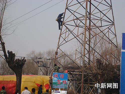 中新網吉林3月16日電(蒼雁)為當官兒,吉林一男子爬到高壓鐵塔上向領導示威,2個小時后,該男子被救下。3月16日,吉林市上演了一場“爬鐵塔求官兒”的鬧劇。