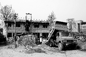 昨日,這里已經看不出村落的原貌,取而代之的是正在建設中的一座座高約4米的二層小樓,砂石、水泥、紅磚堆積在建筑周圍,工人們正在樓體內外忙碌著。他們說受雇于房東,并不清楚原地拆建的原因。