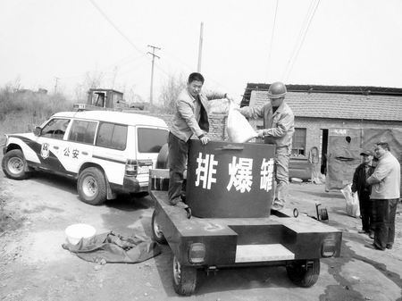 安陽縣銅冶鎮一男子因打工太累,自己研制雷管炸藥,自去年3月至今,私造雷管8000余枚,炸藥200余公斤。昨日上午,民警開著排爆罐車將爆炸物品運出并進行了銷毀(如圖)。
