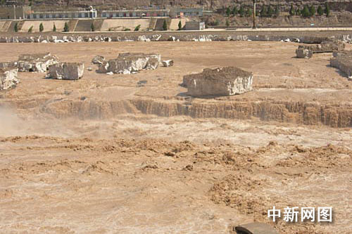 中新網3月27日電(劉一 長年 李峰 嚴小兵)至昨日下午15點,壺口風景區迎來一年一度的桃花汛,把岸上的冰塊沖的所剩無幾。