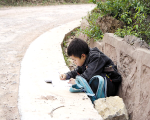 山里娃公路邊寫作業