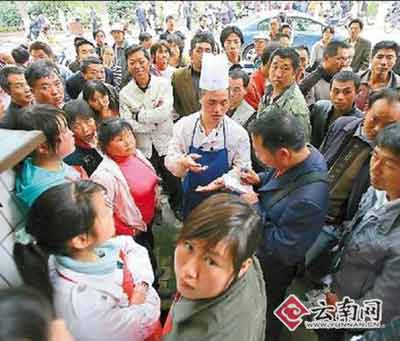 據綜合執(zhí)法局棕樹營大隊楊隊長介紹,當天他們清查的重點并不是這家飯店,而是昆五中附近違法占道經營的攤販。