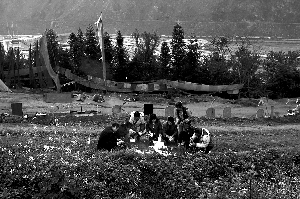 昨日,映秀公墓內,一家人來為遇難親人掃墓。映秀將是汶川公祭活動地方。本報特派記者 張濤 攝