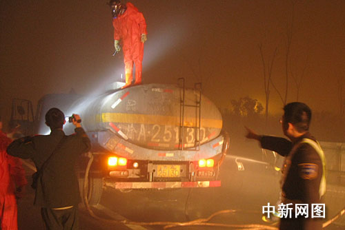 當地高速公路執法部門立即關閉該高速路段上道口,避免社會車輛進入危險區域。當地消防部門隨即趕到現場,通過往泄漏處噴水的方式,對泄漏的鹽酸進行稀釋。