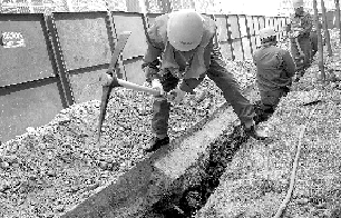 昨日上午,冉屯路清城美苑小區(qū),自來水公司正對(duì)該小區(qū)庭院管網(wǎng)重新鋪設(shè)管道,原因是該小區(qū)目前使用的管網(wǎng)由開發(fā)商出資鋪設(shè),且沒有經(jīng)過驗(yàn)收,入住2年爆管50多次,報(bào)修100多次,鋪設(shè)的PE管材屬于被禁用產(chǎn)品。