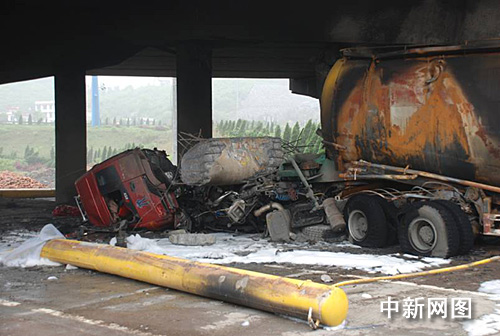 中新網長沙4月17日電( 歐陽浩亞 劉雙雙)4月17日凌晨5時左右,一輛廣東牌照的水泥罐車在郴資桂高等級公路上發生交通事故起火,并將京珠高速479KM+200M處橫跨郴資桂高等級公路的立交橋橋墩撞斷(由南往北方向)。事故造成2人當場死亡,1人受傷。截止發稿時止,京珠高速南往北車輛仍需從宜章、良田出口下高速,走107國道從郴州再上高速。