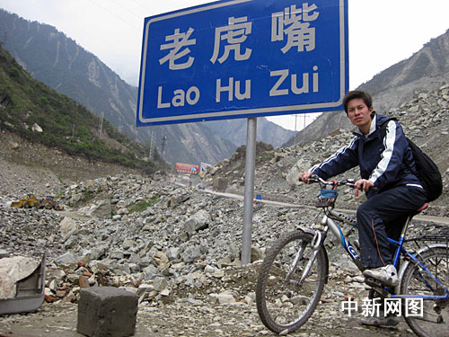 兩周前,西南大學(xué)研究生李應(yīng)財(cái)獨(dú)自一人騎自行車前往四川地震災(zāi)區(qū),一路祭奠那些在“天災(zāi)”中逝去的人們。